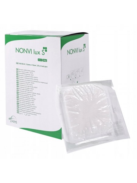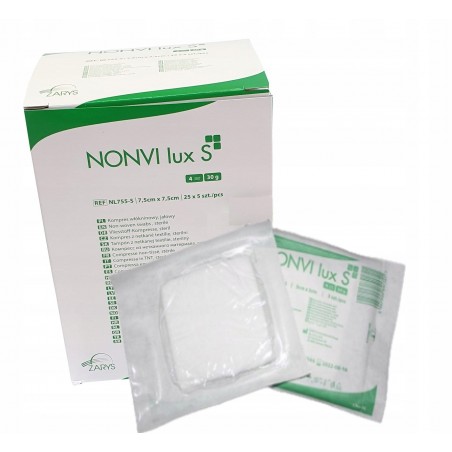 NONVI lux S to kompresy jałowe wykonane z wysokiej jakości hydrofilowej włókniny medycznej. Wysoka gramatura i cztery warstwy sprawiają, że są dobrze chłonne i miękkie. Kompresy są wytrzymałe i nie strzępią się.