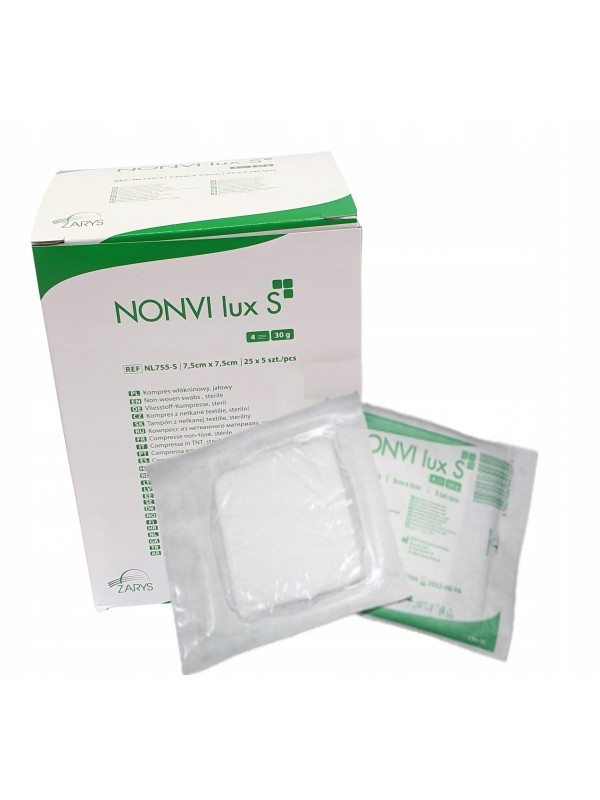 NONVI lux S jałowe kompresy włókninowe, wykonane z miękkiej, chłonnej włókniny o gramaturze 30g/m2.