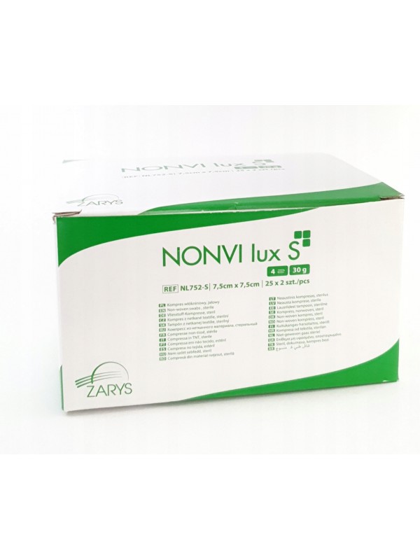 NONVI lux S jałowe kompresy włókninowe, wykonane z miękkiej, chłonnej włókniny o gramaturze 30g/m2.