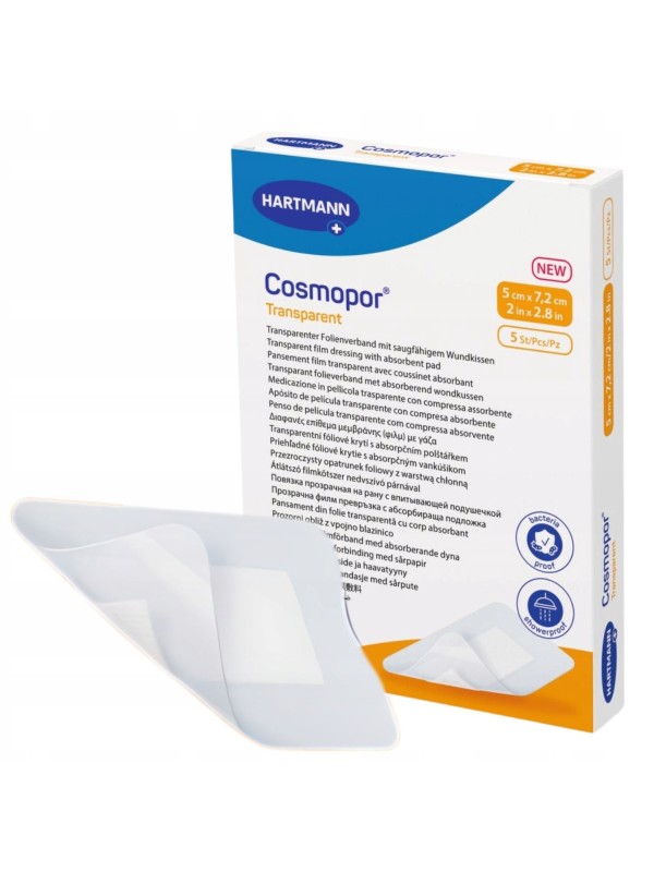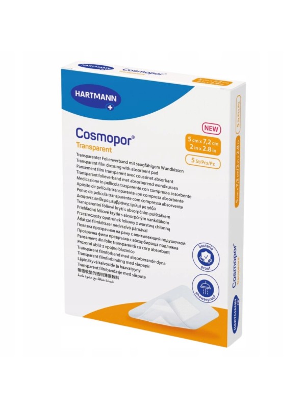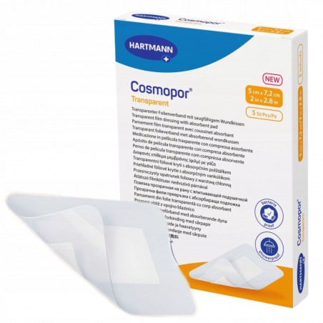 Cosmopor transparent przezroczysty opatrunek foliowy z warstwą chłonną.