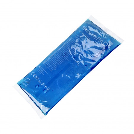 Żelowy kompres wielokrotnego użytku wykonany z trwałej i odpornej na pęknięcia folii, zawierający nietoksyczny żel o wysokiej zdolności magazynowania temperatury.