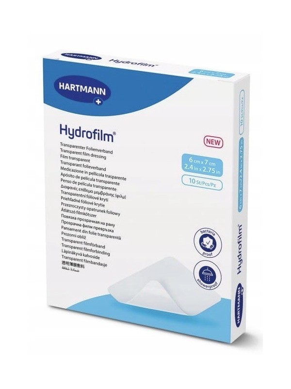 Opatrunek Hydrofilm to transparentny, samoprzylepny opatrunek z folii poliuretanowej, który stanowi ochronę rany przed drobnoustrojami i zakażeniem. Dzięki swej przezroczystości umożliwia stałą kontrolę stanu rany i jej okolicy bez konieczności odklejania opatrunku.