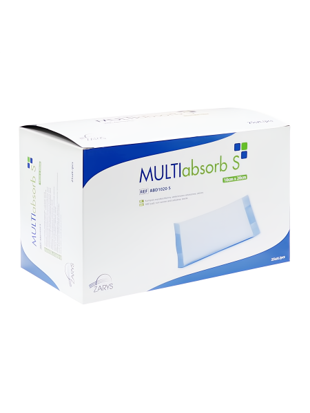 MULTIabsorb S to sterylny, nieprzylepny kompres chłonny o wysokiej zdolności absorpcyjnej, wykonany z połączenia włókniny i celulozy. Dzięki swojej warstwowej budowie doskonale odprowadza wysięk z ran do wewnętrznego wkładu chłonnego, jednocześnie chroniąc skórę i otoczenie przed przeciekaniem. Zewnętrzna warstwa z niebieskiej włókniny stanowi barierę nieprzepuszczalną dla płynów, co podnosi komfort i bezpieczeństwo użytkowania.