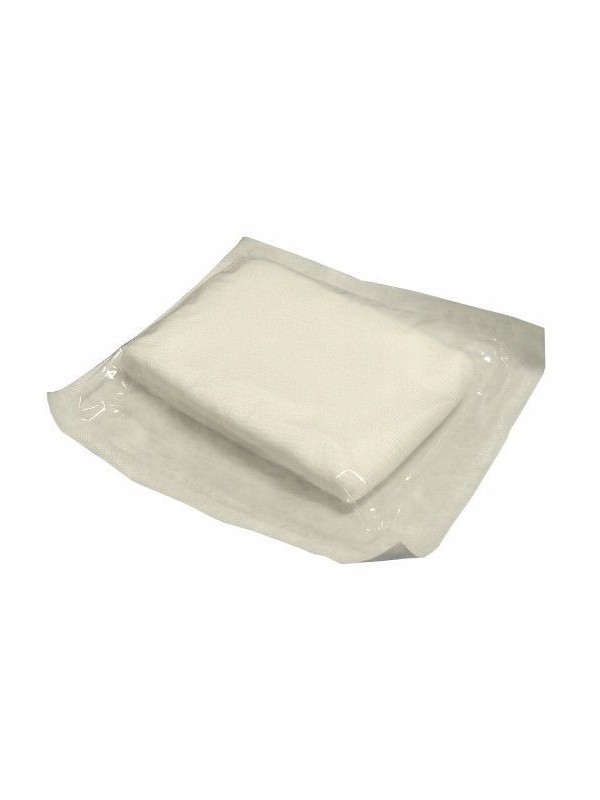 Jałowa gaza opatrunkowa wykonana z hydrofilowej bawełny, bielona metodą bezchlorową.