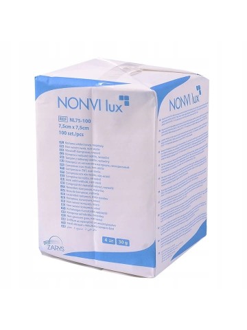NONVI lux to kompresy wykonane ze 100% bawełny hydrofilowej, bielone metodą bezchlorową, z użyciem wody utlenionej.