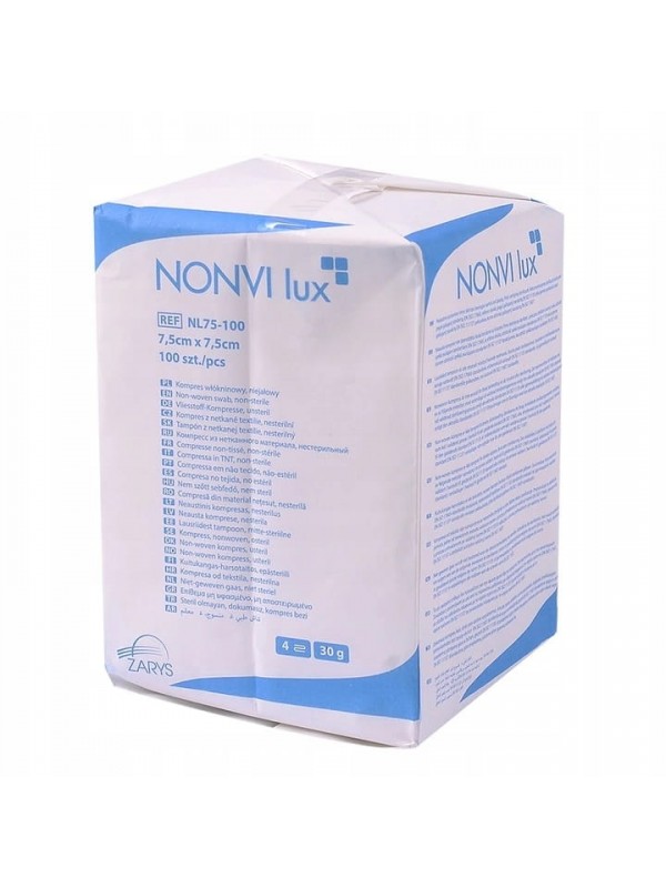 NONVI lux to niejałowe kompresy włókninowe produkowane przez firmę Zarys, przeznaczone do ogólnego opatrywania ran.