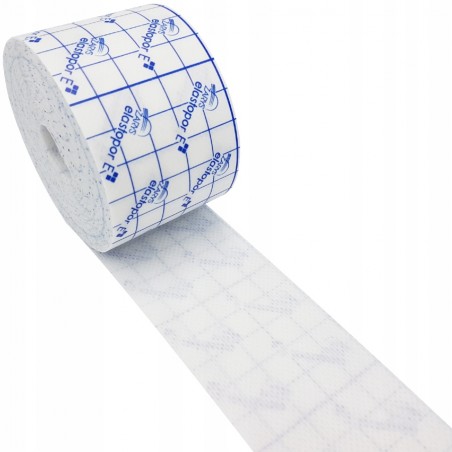 Taśma opatrunkowa, włókninowa, samoprzylepna, niejałowa, wykonana hydrofobowej włókniny, pokryta hipoalergicznym klejem akrylowym.