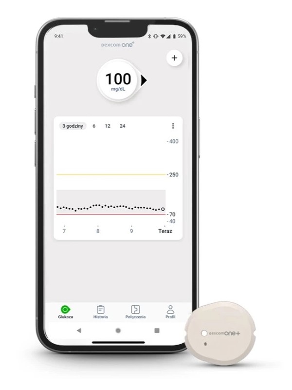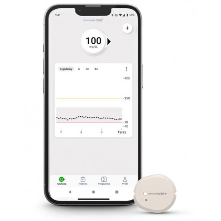 Sensor Dexcom ONE+ to system monitorujący poziom glukozy w tkance podskórnej w czasie rzeczywistym, przesyłając dane bezpośrednio na kompatybilne urządzenie (smartfon lub odbiornik Dexcom ONE+). Nie wymaga skanowania ani kalibracji. Sensor cechuje wysoka dokładność, nawet w przypadku gwałtownych zmian poziomu cukru we krwi.