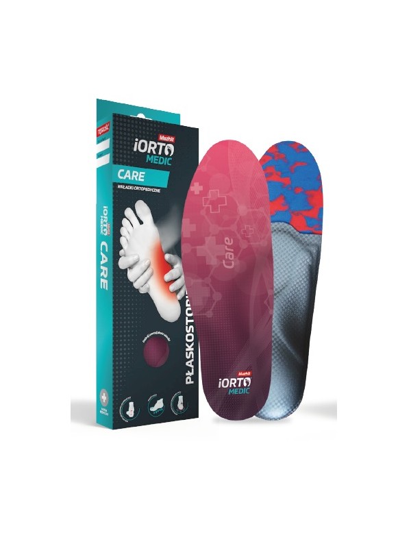 Wkładki ortopedyczne Mazbit COMFORT 2/3 (IO76) to ultracienkie, wielowarstwowe niepełne wkładki skonstruowane w sposób zapewniający odpowiednie ustawienie całej stopy. Zastosowana w miejscu śródstopia pelotka przeciwdziała płaskostopiu poprzecznemu i przeciążeniu przodostopia, natomiast dynamiczna konstrukcja wspiera łuk podłużny stopy aktywując jednocześnie mięśnie strzałkowe zapewniając właściwą oś ruchu podczas chodu. Warstwa amortyzująca niweluje mikrowstrząsy chroniąc stawy stopy przed mikro urazami.